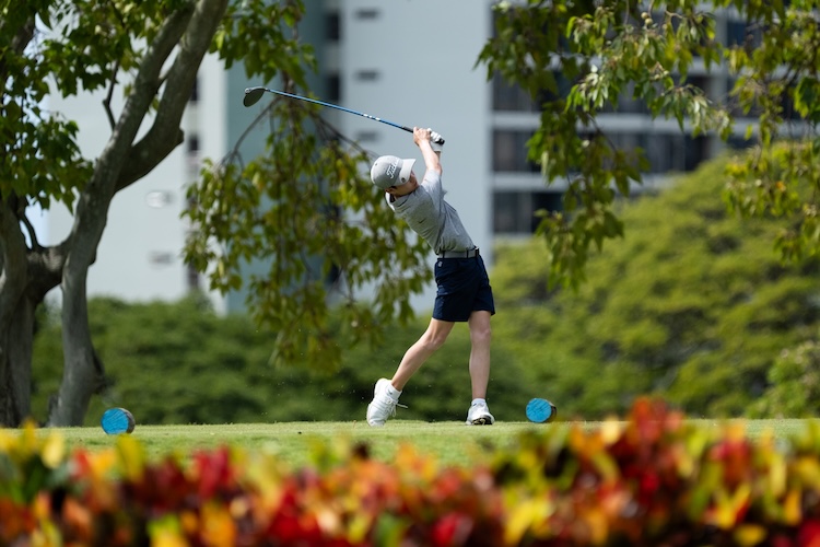 Cole Kim climbed the leaderboard to take the lead in the Boys Division today