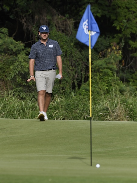 KALAUAO, O‘AHU – Pearl at Kalauao’s newly renovated layout proved to be a challenge today for a competitive Division I field on O‘ahu. Darkness halted play before all competitors could complete 36 holes, but as the sun set over Pearl Harbor, team Nevada held the lead at 9-under par, three strokes ahead of UC San Diego at 6-under, with West Virginia University (WVU) close behind at 5-under.