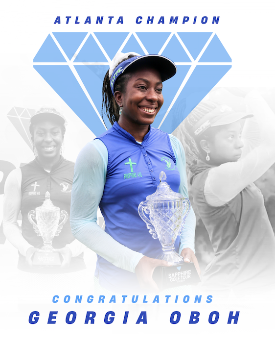 ATLANTA, GA — The Sapphire Golf Tour today announced that Georgia Oboh claimed the Atlanta crown at Château Élan Resort & Golf Club, closing out a two-round total of 143 (70-73) to secure her first victory on the tour. Oboh’s win capped a milestone week that brought together a field of talented Black women professionals, a spirited Pro-Am, and an energetic community of supporters across the greater Atlanta area.