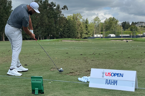2023 Masters Champion and 2021 U.S. Open Champion Jon Rahm getting ready using his Champions Edition Full Swing KIT at Los Angeles C.C. during Monday’s Practice Round with coach Dave Phillips.