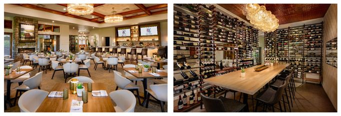 Outdoors, a new pergola system provides a year-round gathering area with integrated televisions, fans, gas heating, and automated shades. Restoration Hardware furnishings and panoramic views of the 18th green make it an ideal setting for cocktails, celebrations, and sunset dining.